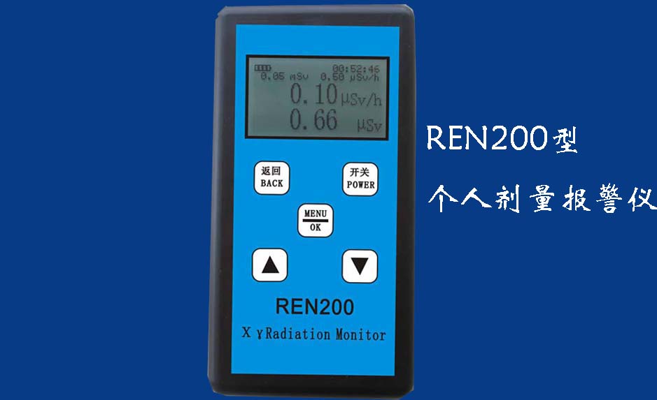 REN200A 個人輻射報警儀REN200A型X、γ輻射個人劑量當量HP(10)監(jiān)測儀(簡稱:個人劑量報警儀)內(nèi)置高靈敏度蓋格計數(shù)管為探測器,主要用來監(jiān)測各種放射性工作場所的X、γ以及硬β射線的輻射,具有響應快,測量范圍寬的特點。能顯示工作場所的劑量當量率和累積劑量,更換電池時,日期及累積數(shù)據(jù)能永久保存。可選配RenRiPersonal個人劑量管理軟件,該軟件可存儲多個人的歷史數(shù)據(jù),能記錄日累積、月累積、年累積、輻照時長、計算平均劑量率、扣除或不扣除本底輻射,且以文字和圖譜的方式展現(xiàn)數(shù)據(jù)。廣泛應用于核電站、加速器、鋼鐵、化工、同位素應用、工業(yè)X、γ無損探傷、放射醫(yī)療、鈷源治療、γ輻照、放射性實驗室、核設施周圍環(huán)境監(jiān)測等領域中的工作人員進行個人安全防護監(jiān)測及放射性提示。&nb